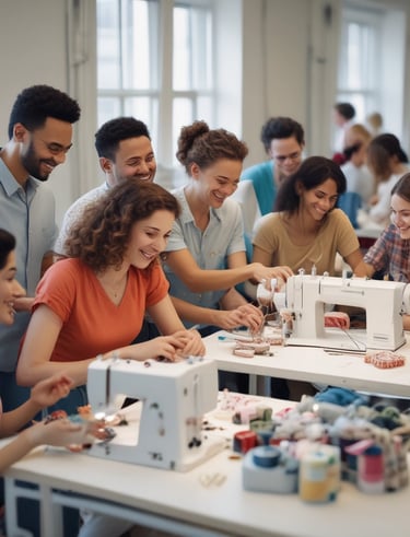 We help you build sewing skills at home using fabrics you already have, making learning fun and sustainable.
